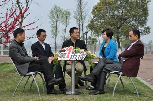 3月21日,益阳广播电视台大型电视系列访谈节目《绿色益阳 生态家园》栏目摄制组来沅采访推介我市生态建设、现代林业产业和森林文化建设等方面的成功经验和做法。图为市林业局、湿地局及相关负责人在接受记者专访。(胡爱民 摄)