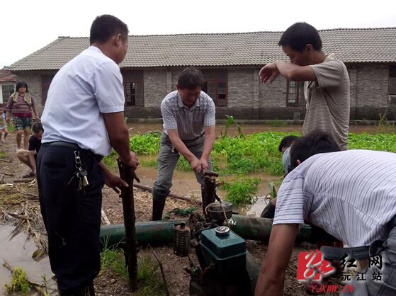四季红镇积极组织干部群众救灾,将内涝积水排出。 薛云 摄