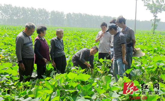 本网讯(通讯员 胡宗凡、周练军) 近日,沅江市茶盘洲镇农业综合服务站会同蔬菜专业合作社组织蔬菜种植大户,举办抓良机、促高产技术培训班,农技员在南瓜大田里,手把手的讲解中期管理技术。