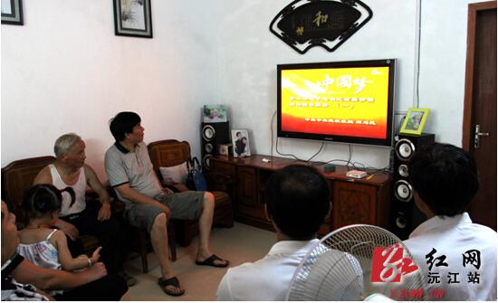 据了解,该村支书李春芳在年初自费从长沙购来大屏幕液晶彩电,并连接全国远程教育网络,在家中就可以看到全国远程教育视频,涉及政治理论、政策法规、典型经验、适用技术、经营管理、农村卫生、科普知识等10多项内容,村民们一有空就爱钻到这里来看看,农业生产遇到什么疑惑,也可以随时找到相关视频讲解。72岁的老党员彭正春说,通过这个视频,我就知道现在全国上下在搞群众路线教育实践活动,我们沅江在开展“三访三化”工作,“中国梦”、“四化两型”等也知道一点点。特别是农业生产方面,这里面有许多种植养殖技术,随时可以来看,方便得很。