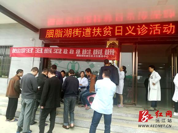 开展扶贫日义诊活动。街道卫生院公卫科的数十名医护人员免费为前来参与义诊的贫困群众进行一般体格检查和常规辅助检查,并耐心解答群众的询问,充分发挥医疗救助在保障和改善民生以及脱贫攻坚中的积极作用,充分发挥爱心扶贫的强大力量,助力街道脱贫攻坚。