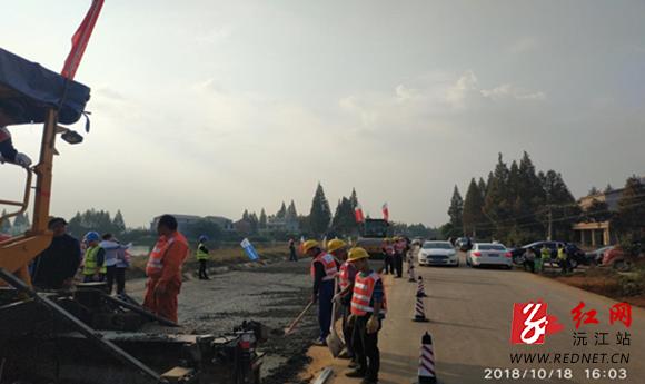 红网沅江市分站10月19日讯(通讯员 周政)10月18日下午3时,机器雷鸣,车辆穿梭,经过多日的精心准备,漉乐线项目的水泥稳定碎石底基层试验段正式开始摊铺,标志着漉乐线正式开始路面工程施工。漉乐线自去年5月正式动工以来,现44公里老路面加宽路段路基工程已基本完成,全线路基正在进行最后清理,将于10月底分段陆续进行路基交工验收,11月上旬将开始全线路面垫层施工。