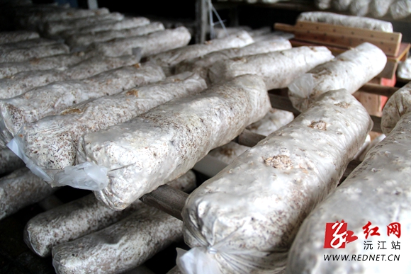 今年在周珍和丈夫的辛勤付出下,如今的花菇种植面积已初具规模。“起初只有3个大棚,菌种存活率不高,产量只有3千棒左右。”周珍告诉记者,创业初期因经验和技术的不足,导致花菇产量不佳。在当地扶贫队的指导和帮助下,周珍前往衡阳学习食用菌种植技术,并请专家实地教学,结合当地气候条件制定花菇种植方案。现在合作社花菇产量逐年增加,效益可观,基地已经扩建到21个大棚,种植面积达3亩5分,预计今年花菇产量将达到30至40吨,产值在40万左右。